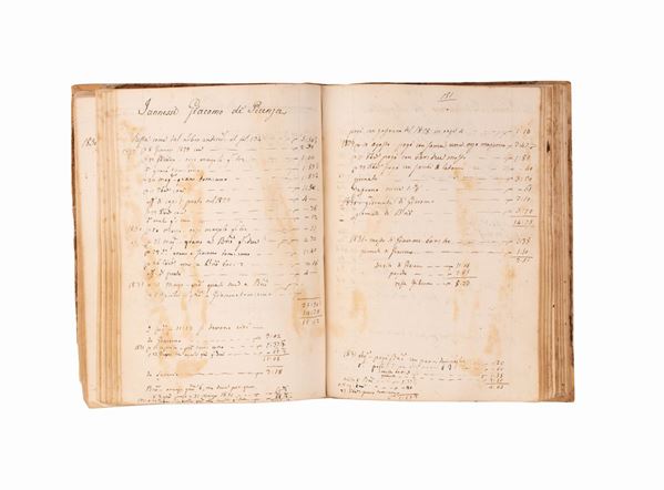 Manoscritto dell'Ottocento ove sono riportati i conti per l'affitto dei prati, del grano, dell'orzo per i comuni di Picenza, Assergi ed altri [..]