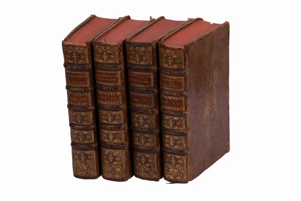 Paris, apud Florentium De laulne, 1712. Cinque volumi di 8 ( Vol. 1,3,4,5,8) piena pelle, testatine titoli e fregi in oro.