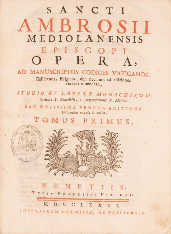 Sancti Ambrosii Mediolanensis Episcopi opera ad manuscrupitos codices vaticanos Venetiis tipis Francisci Pitteri, 1781