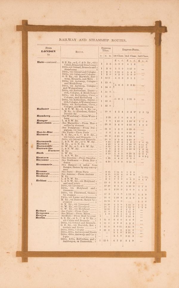 The Hotel of Europe 1879 with the principal Maps and railway and steam ship routes Enri Herbert , London