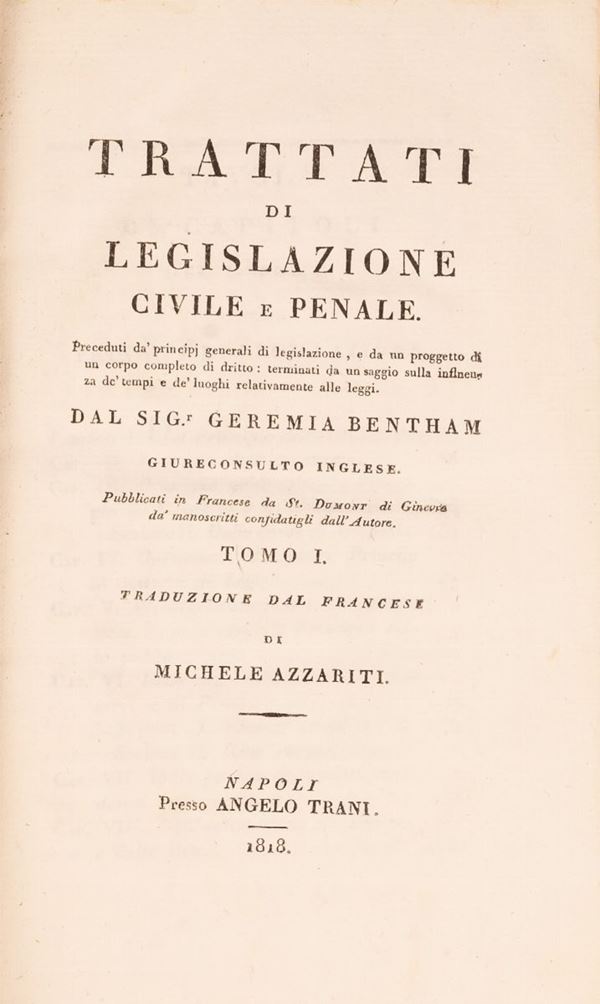 Trattati di legislazione civile e penale (...) del Sig. Geremia Bentham giureconsulto inglese, traduzione dal francese di Michele Azzariti