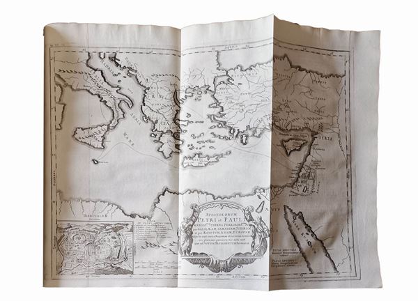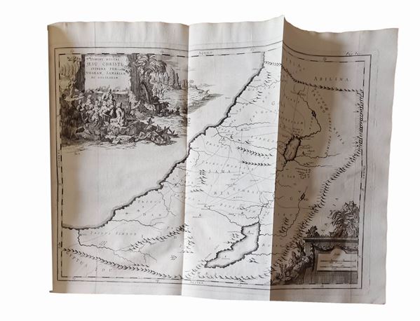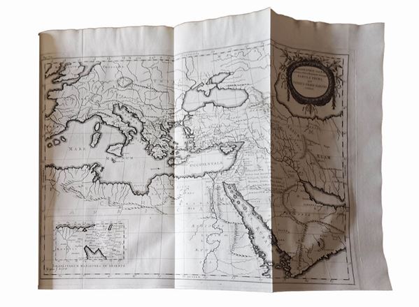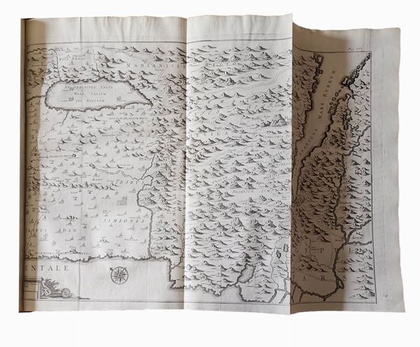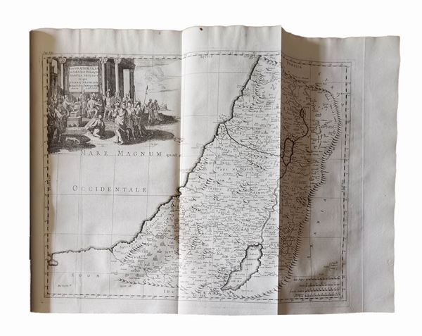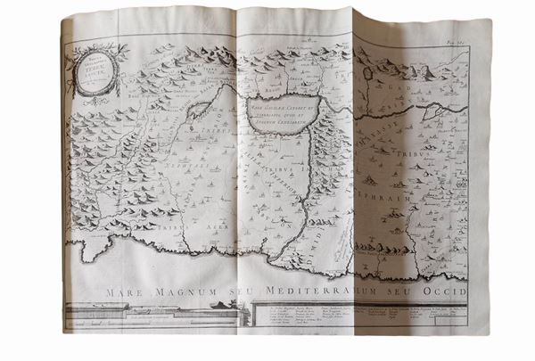 34 volumi in Gran Folio antico (cm 43,5) in Piena Pergamena con tasselli in pelle ai dorsi con nervi e tagli spruzzati in rosso, pag. complessive 22.000 circa. 55 le enormi tavole, piani, carte, molto  spesso ripiegate (OPAC-SBN ne prevede solo 48). Bellissime e maestose le innumerevoli testatine, iniziali figurate e finalini. Testo in Latino ed Ebraico. Bollo della Kings Inn Library Dublin al verso di ogni frontespizio ed ex-libris di Samuel Parr ad ogni prima carta bianca. Opera completa, pagine bianche incluse.