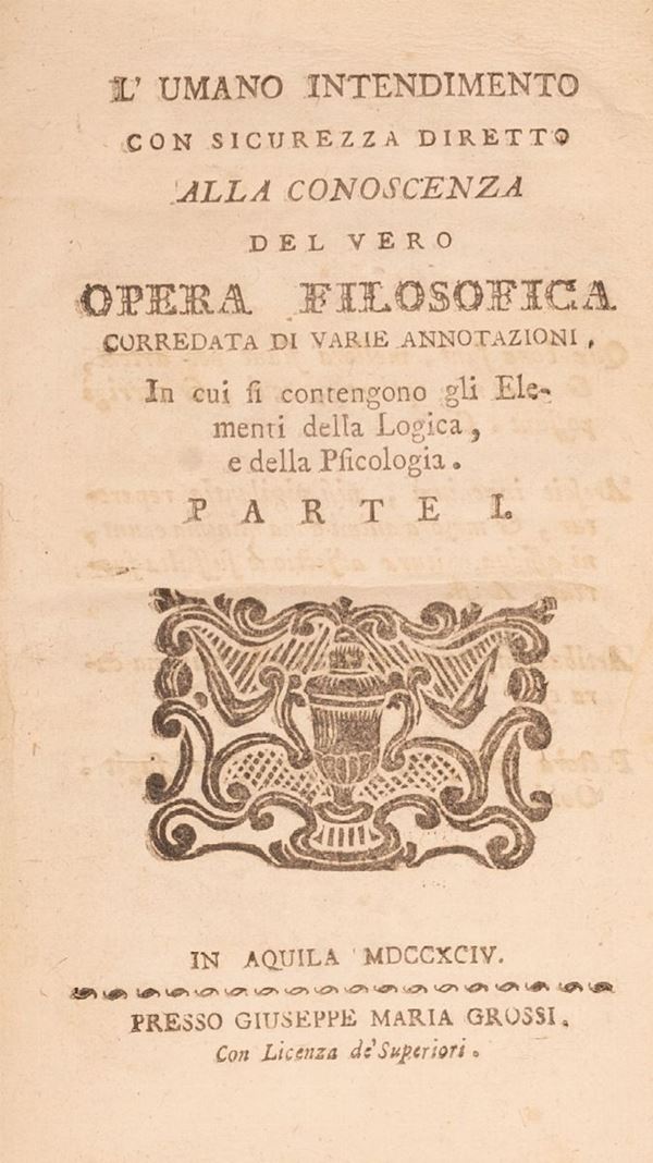 L'umano intendimento con sicurezza diretto alla conoscenza del vero. Opera filosofica corredata di varie annotazioni in cui si contengono gli elementi della logica e della psicologia. Part I