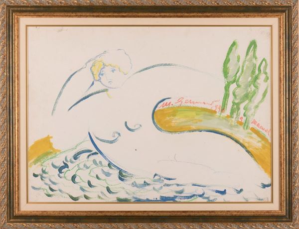 cm 56x76; con cornice cm 76x93Firmato al centro con dedica "A Manuel"