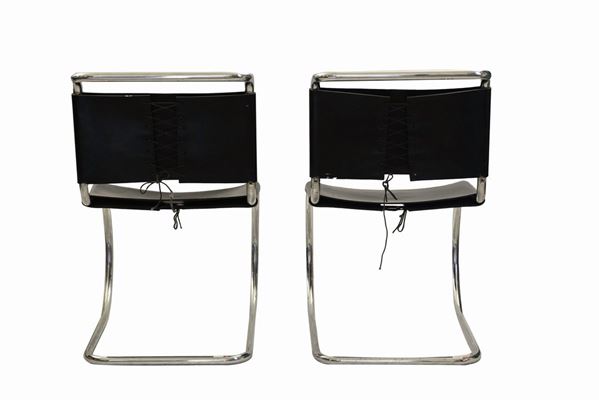 4 sedia anni ’80 in stile Bauhaus disegnata da Mart Stam e Marcer Beuer in acciaio e cuoio nero