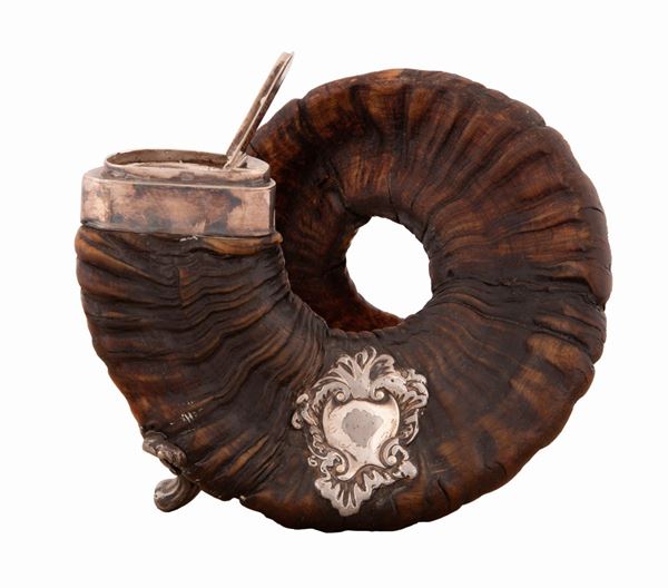 Corno di muflone con applicazioni in argento