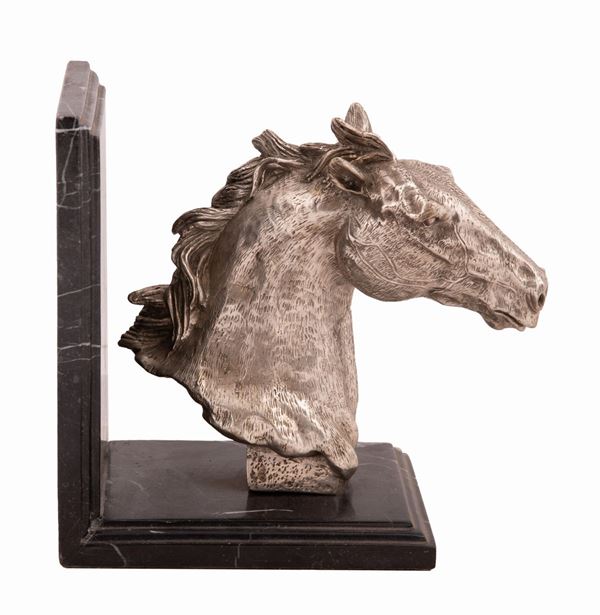 Fermalibro a forma di cavallo in metallo argentato