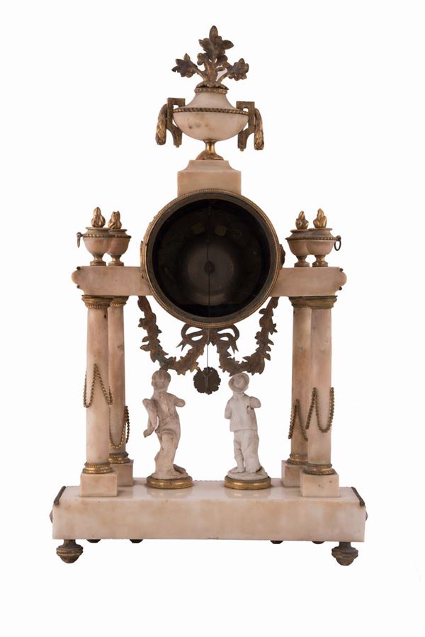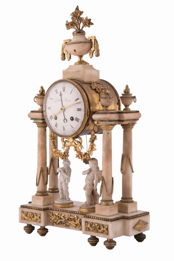 Orologio Impero da tavolo in marmo e bronzo dorato