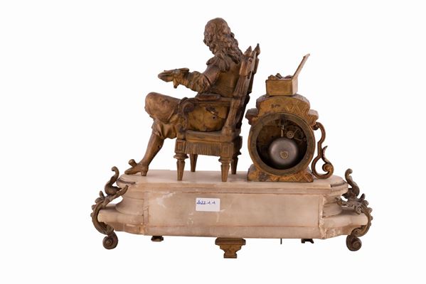 39x43x15 cmOrologio da camino in bronzo e onice raffigurante figura di pittore.