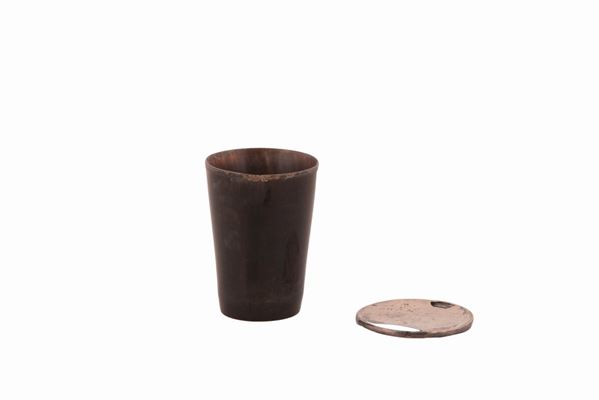 Piccolo boccale in corno con coperchio in metallo argentato Sheffield