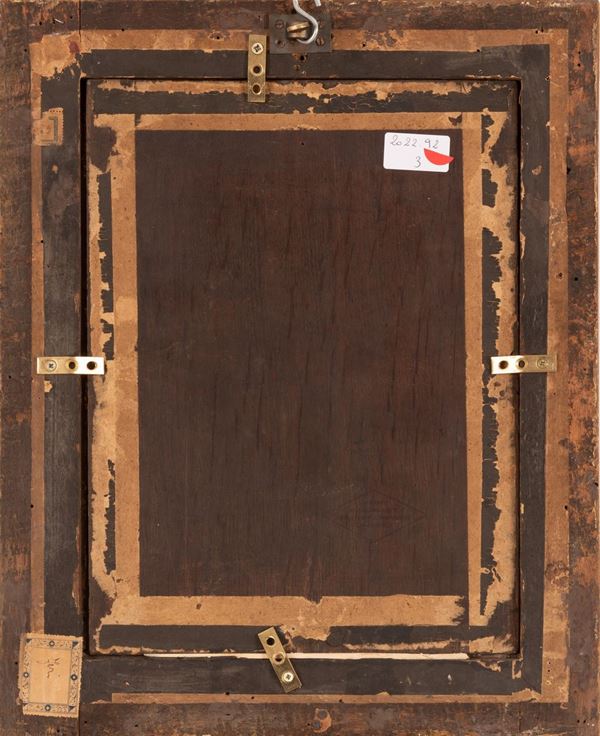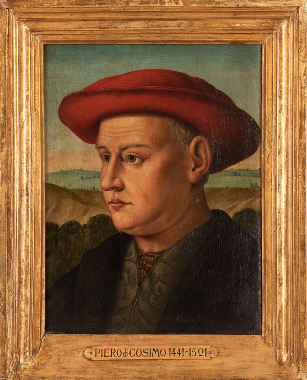 cm 33x25; con cornice cm 43x35Targhetta in ottone sulla cornice dorata recante la dicitura " Piero di Cosimo 1441-1521".