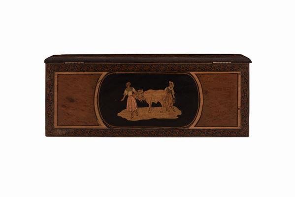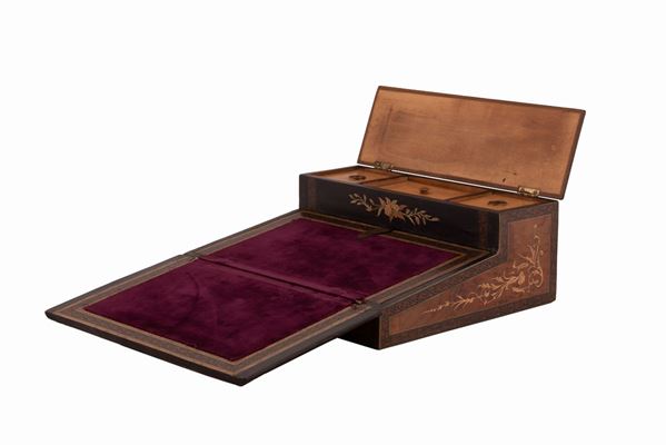 SCRITTOIO DA VIAGGIO SORRENTINO CON DECORAZIONE CENTRALE RAFFIGURANTE BALLERINI DI TARANTELLA
