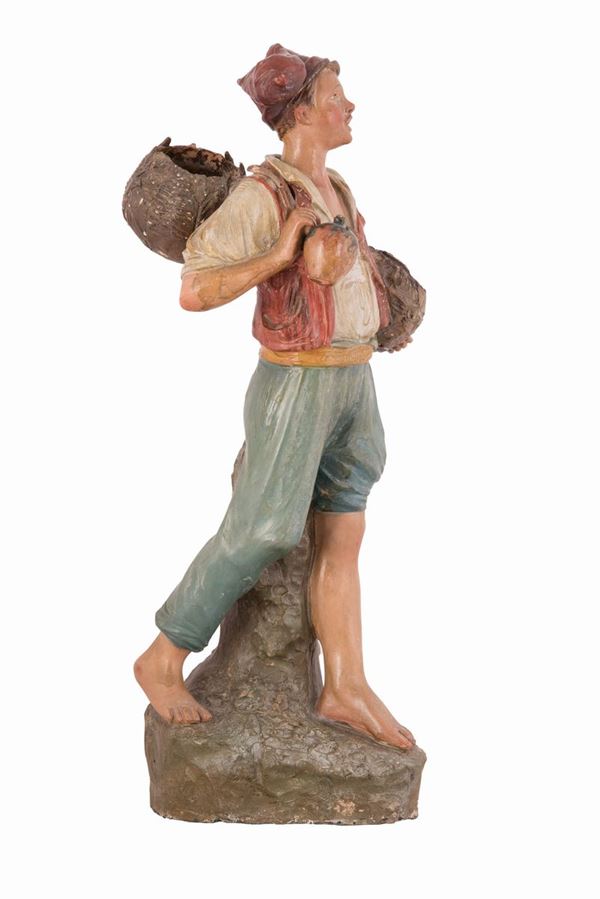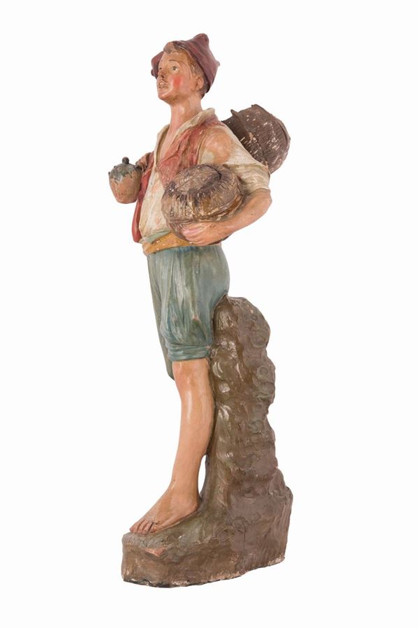 Scultura in terracotta Napoli raffigurante giovane pescatore