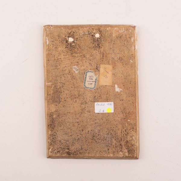 cm 27,5x19,5L'opera è pubblicata in: F. G. M. Battistella, V. de Pompeis, Le Maioliche di Castelli dal Rinascimento allo Storicismo; Chieti 2005, p. 150.
