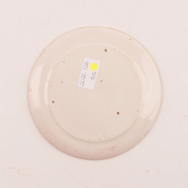 Piattello in maiolica istoriato con scena mitologica (toletta di Venere)