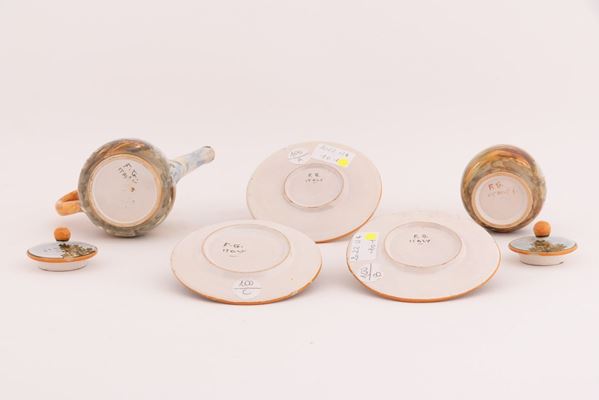 Composto da 3 piattini, 2 tazzine, caffettiera, zuccheriera e lattiera.