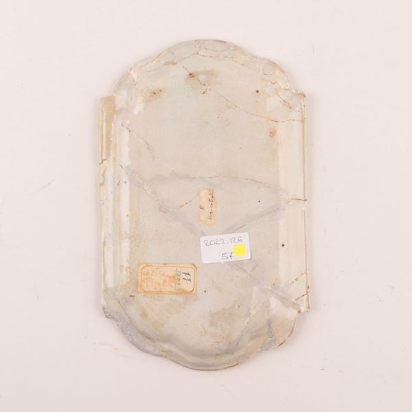 Vassoio mistilineo in maiolica decorato con una cappella centrata e da un grande organo a canne.