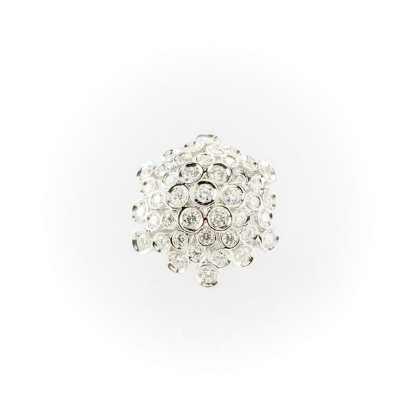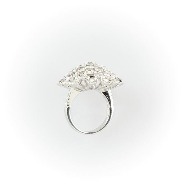 Anello realizzato in oro bianco con fantasia diamanti bianchi taglio brillante
