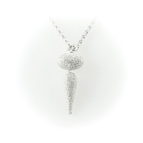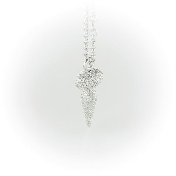 Girocollo in oro bianco con pendente costituito da due elementi in pavè di diamanti bianchi su tutta la superficie e catenina rouleaux.