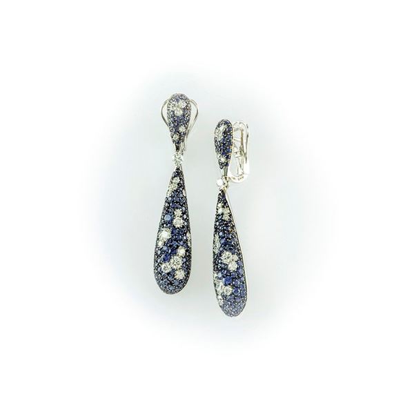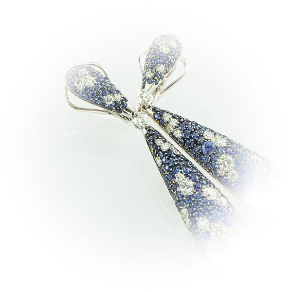 Gismondi pendant earrings with brilliant cut diamonds and brilliant cut sapphires