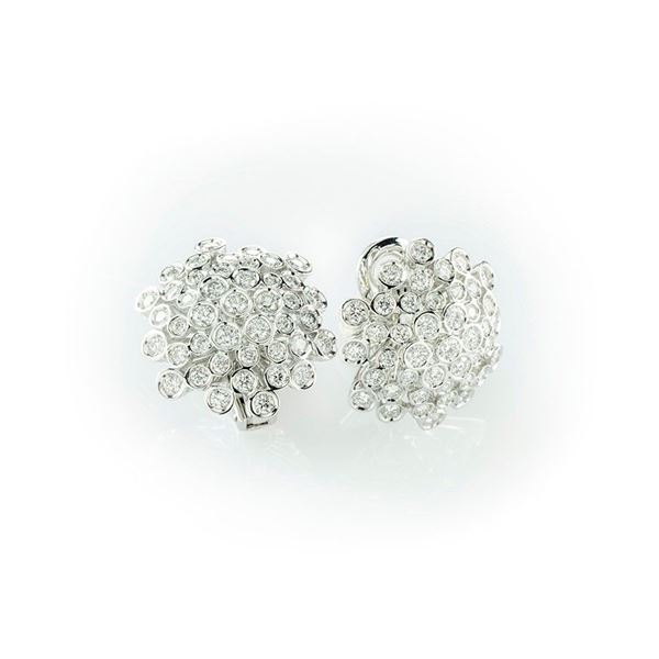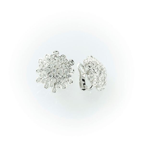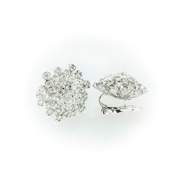 Orecchini a bottone in oro bianco con una composizione di diamanti bianchi taglio brillante