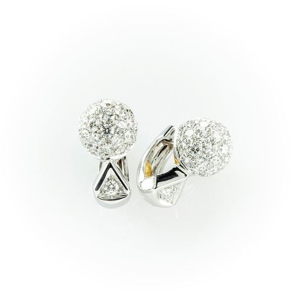 Orecchini boccole Recarlo in oro bianco con pavè di diamanti bianchi taglio brillante