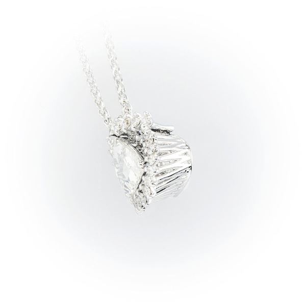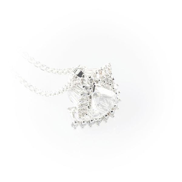 Recarlo round neck in white gold with pendant with antique cut central drop diamond and brilliant cut diamond pavè contour