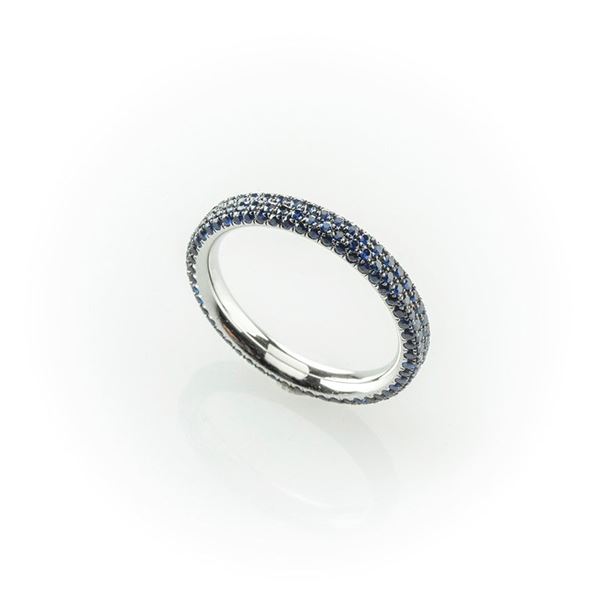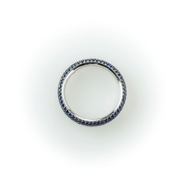 Veretta girodito realizzata in oro bianco con pavè di zaffiri blu