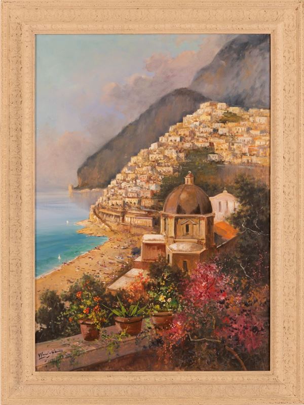 cm 100x70; con cornice cm 120x90Firma illeggibile in basso a destra