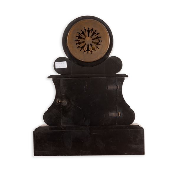 Orologio da camino Napoleone III in marmo nero di Belgio e rosso di Francia Vincentii & Cie medaille d'argent 1855
