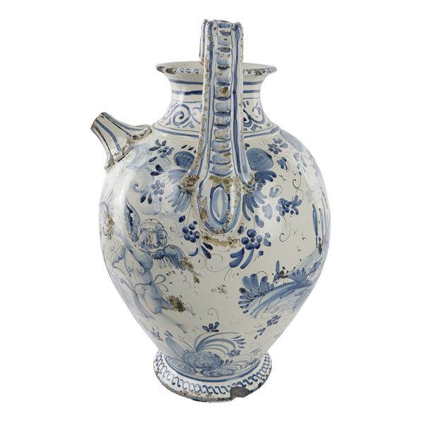 Grande orciolo biansato con decoro a smalto berettino. Manifattura napoletana del XVIII secolo