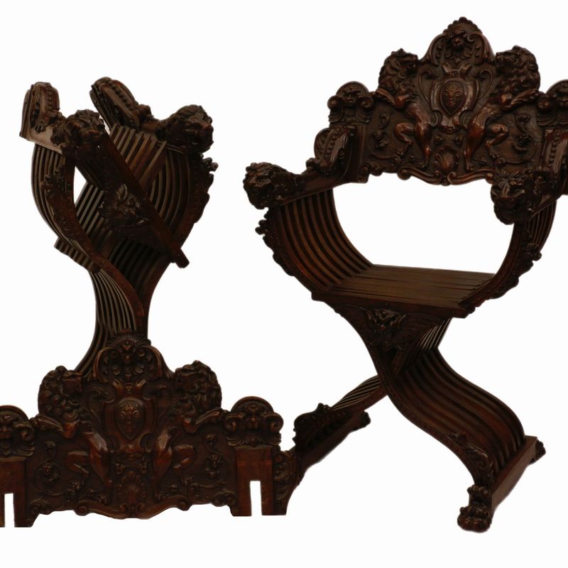 Coppia di sedie savonarola. Toscana, XIX secolo