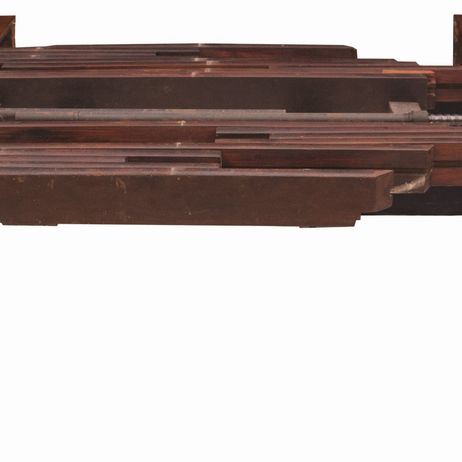 cm 150x150; esteso: cm 150x330Sostenuto da gambe tornite con rotelle originali in ottone. Provvisto di tre prolunghe. Meccanismo di allungamento a manovella a doppia mandata.