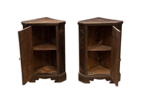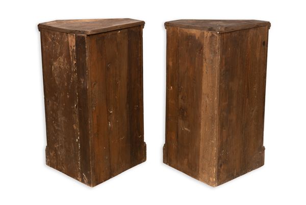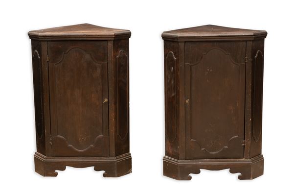 Coppia di angolari scantonati in noce, Marche, XVIII secolo