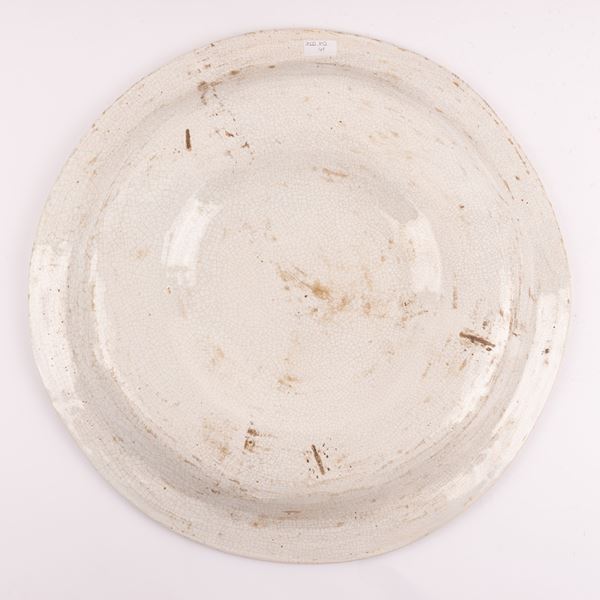 Grande centrotavola in ceramica bianca arricchito da stemma nobiliare