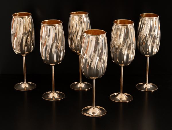 6 flutes in argento 800/000 costolonati e mossi a torciglione. Punzone 240 PD