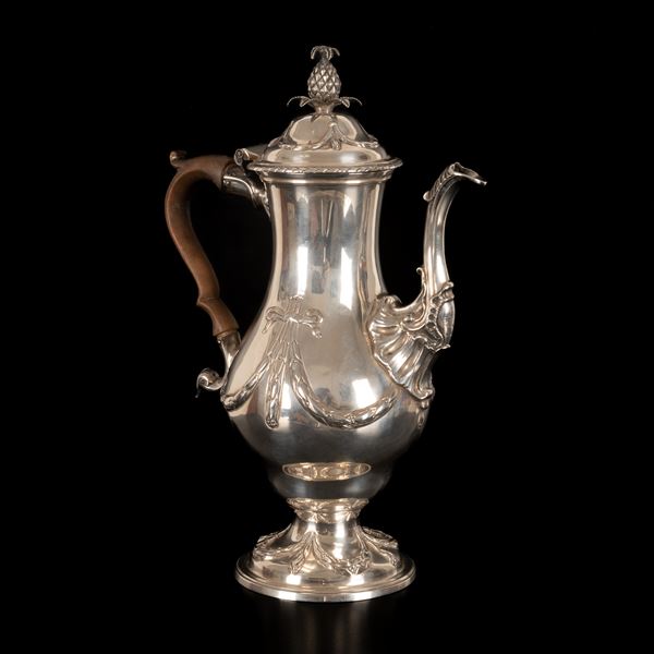 Antica caffettiera inglese in argento 80/000 finemente cesellato