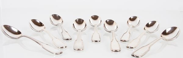 Lotto composto da 9 cucchiaini da tè in argento 800/000 con punzone 15 BS di Ellighidini Bosco