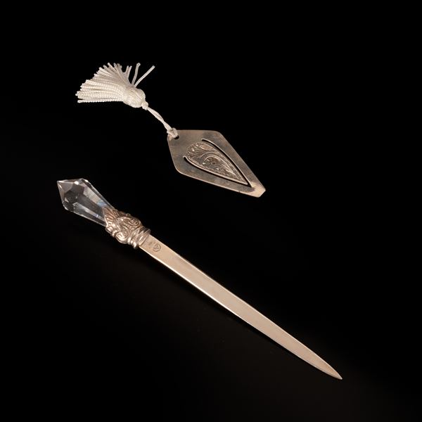- tagliacarte in Ag. 925/000 con manico in cristallo