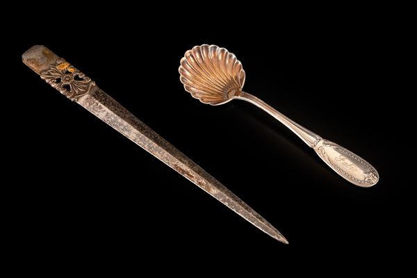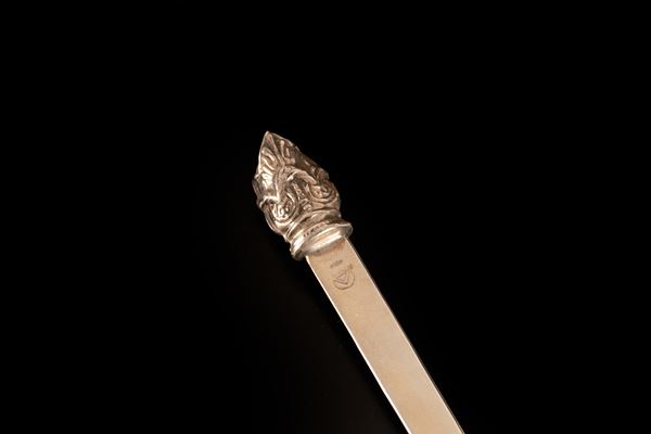 - tagliacarte con manico decorato, lunghezza 20 cm in argento 800/000. Punzone 29 PD