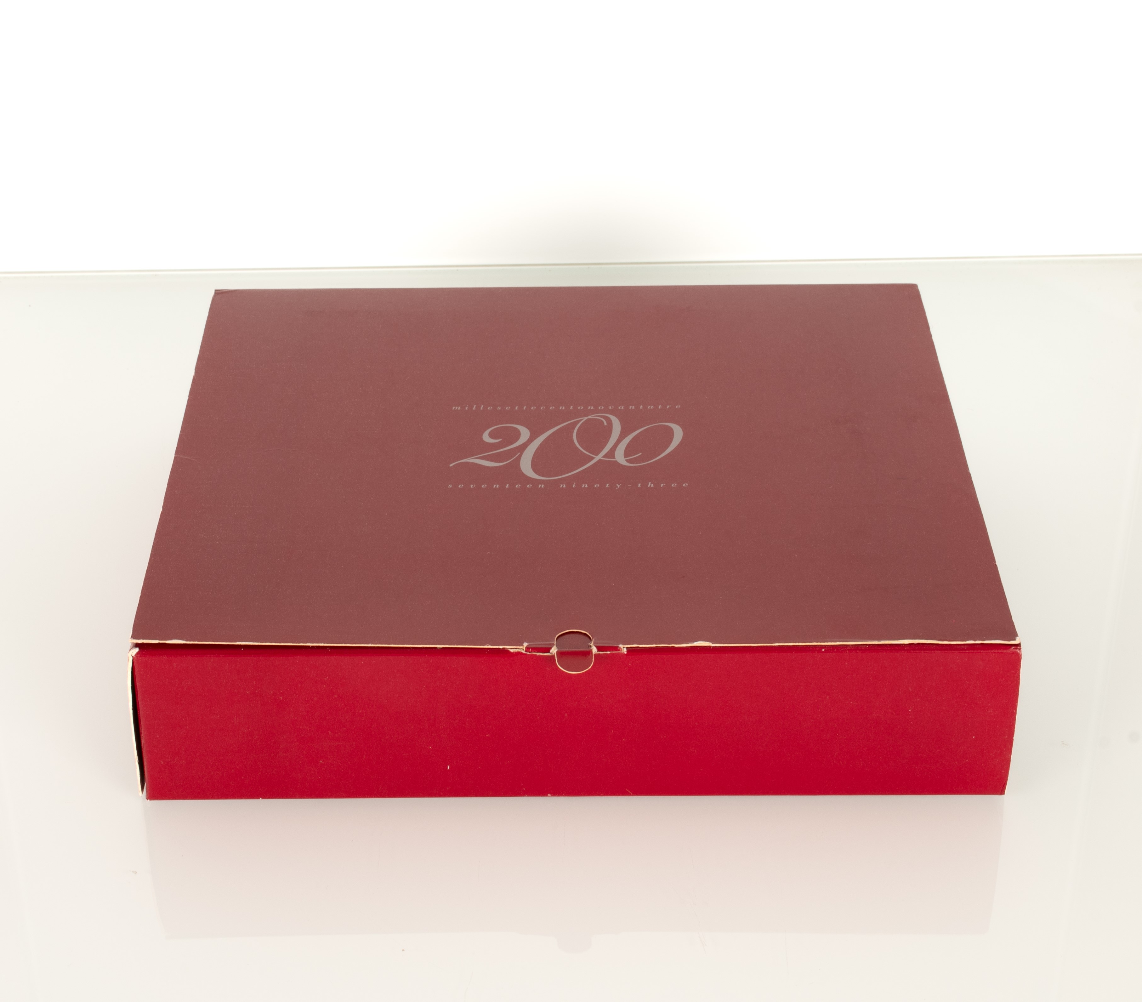 Creata nel 1993 per commemorare il bicentenario della morte del commediografo nel 1793. Cappuccio e guaina guilloché in argento sterling con clip e finiture dorate. La fascia del cappuccio è incisa con una data commemorativa e incorniciata da maschere della Commedia dell'Arte. La penna è presentata in scatola in legno con un palcoscenico inserito all'interno del coperchio. Stilo in ottimo stato di conservazione, mai inchiostrata. Presenta cofanetto e scatola originali in perfette condizioni.