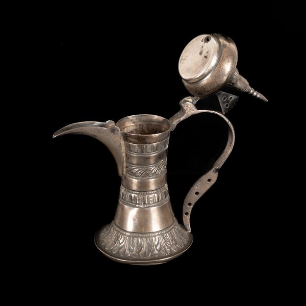 Piccola ed antica caffettiera berbera in metallo argentato