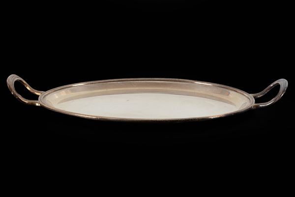 Piccolo vassoio ovale in argento 800/000 con manici sporgenti