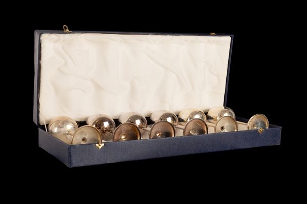 Sei calici in argento 800/000 in scatola originale. Punzone 30 PD (F.LLI ZARAMELLA - Padova)