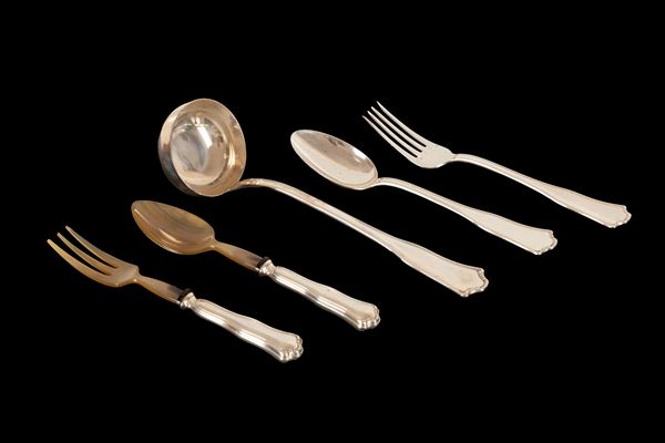 Servizio di posate da 12 persone in argento Pacific Silver Cloth exclusive for Christofle. Punzone 23BO, Fabbrica posateria argento e banco [..]