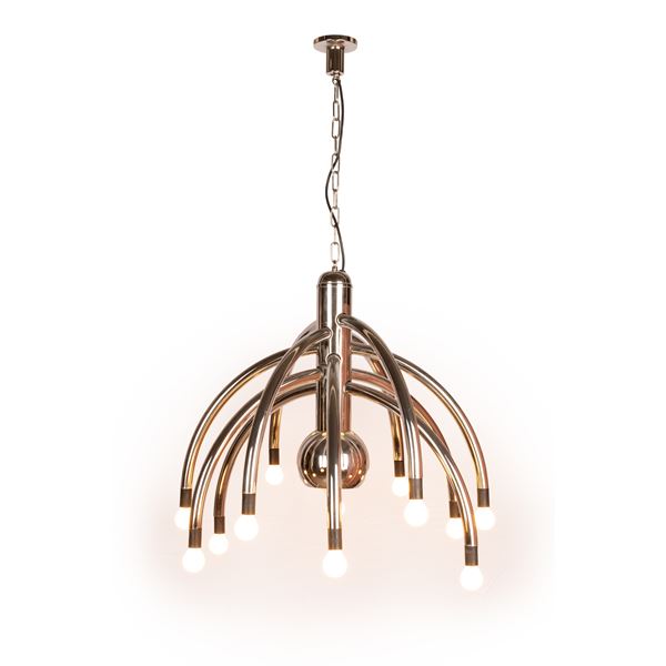 Chandelier in chromed metal with 13 lights