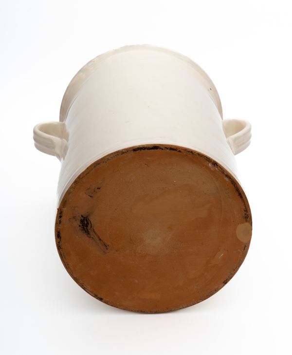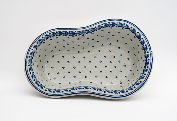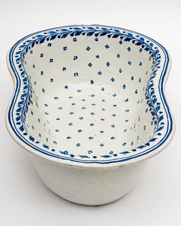 Bidet fine XIX secolo con bordo mistilineo decorato in blu a serto di fiori e a puntini all'interno