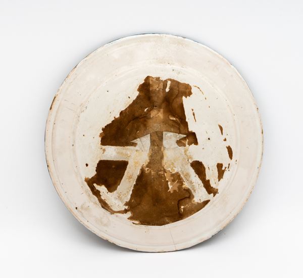 Piattino con lavandaie nel cavetto e putti, cartigili e serti nella tesa
