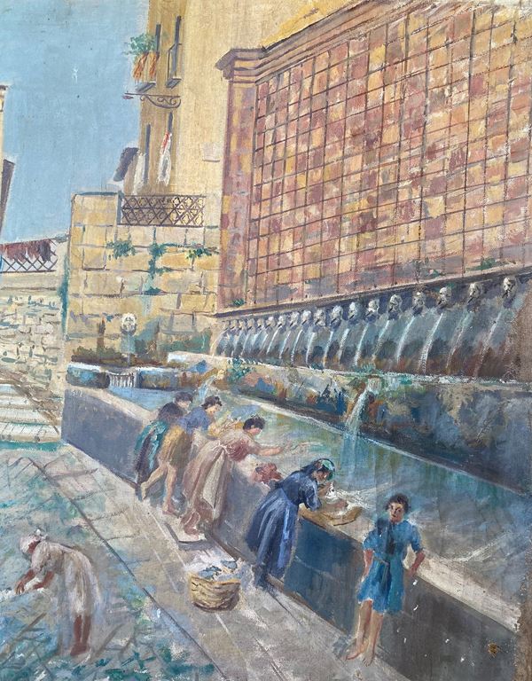 Donne che lavano i panni alla Fontana delle 99 Cannelle di L'Aquila