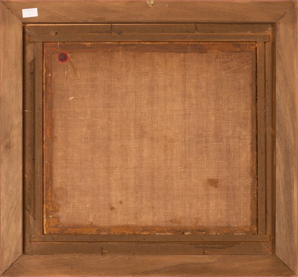 con cornice cm 73x78Sullo sfondo una croce rossa in alto a destra e figure di portantini con una barella sulla sinistra. Un richiamo alla Croce Rossa Italiana per la quale l'artista aveva realizzato il manifesto per l'assistenza ai tubercolosi.